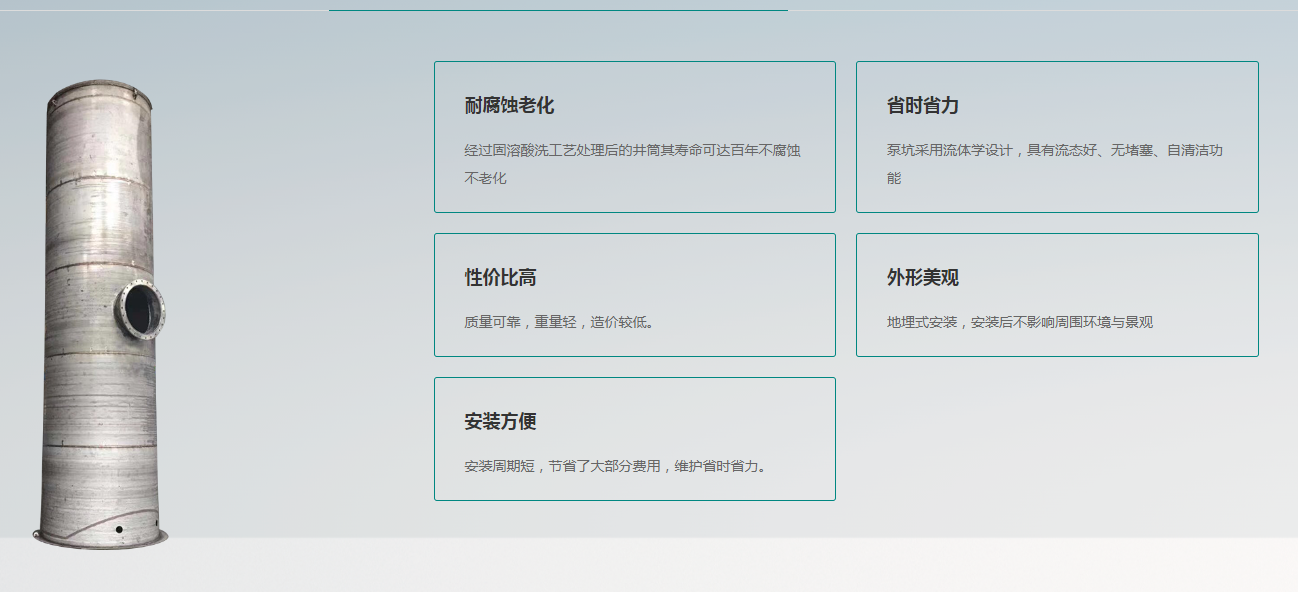坚固的筒身,尤其适合再复杂的地理条件安装及运输,磕碰对井筒不会造成伤害